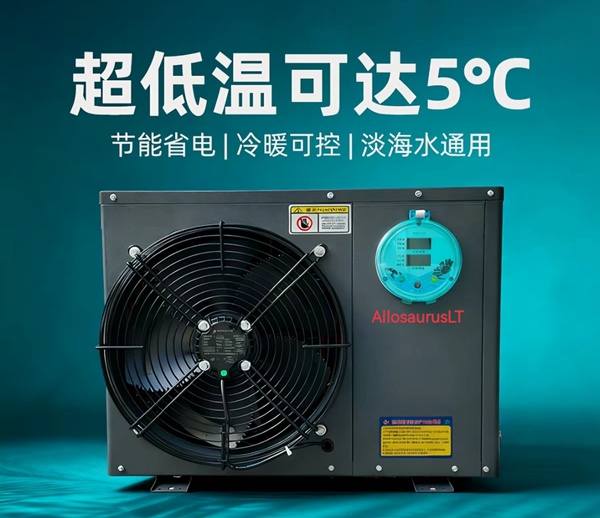 鱼池水冷机是养殖与水族系统的“恒温空调”,核心是通过蒸汽压缩式制冷循环,把鱼池水体热量持续移走,维持稳定水温,保障水生生物生存与生产效率。